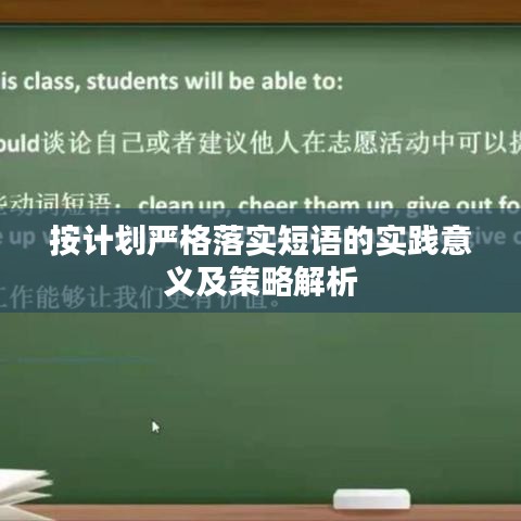 按计划严格落实短语是一种重要的理念和方法,通过制定明确的计划、严格执行、加强监督、设置激励与惩罚机制以及持续改进等方式,我们可以更好地实现我们的目标,提高工作效率和质量,在未来的发展中,我们应该更加重视这一理念的应用和实践。